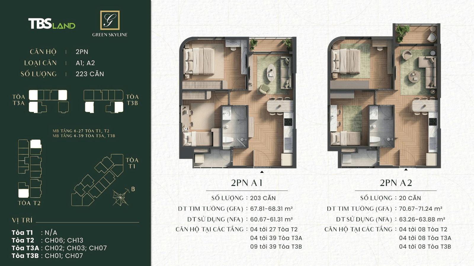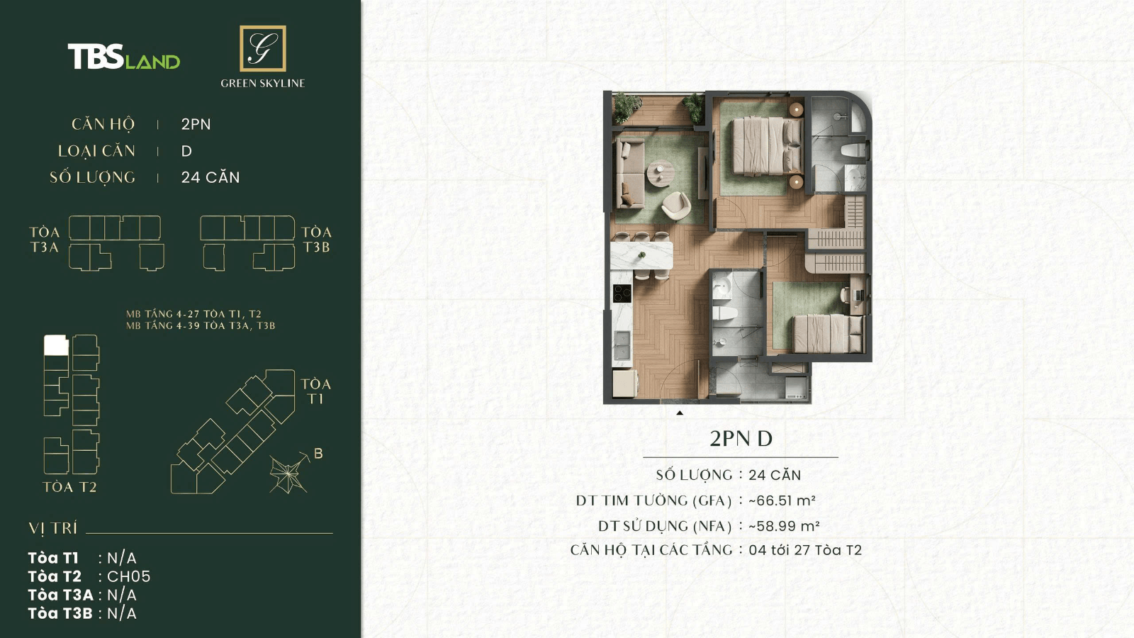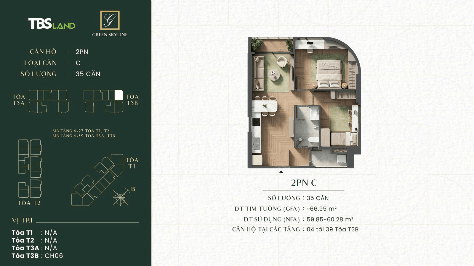 MẪU CĂN 2PN 2WC GÓC ( 67m2 )